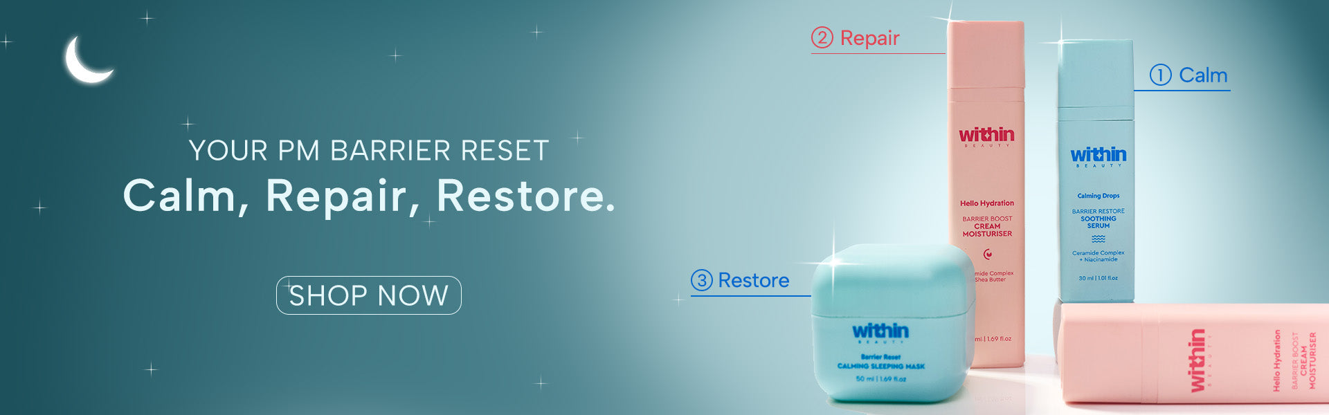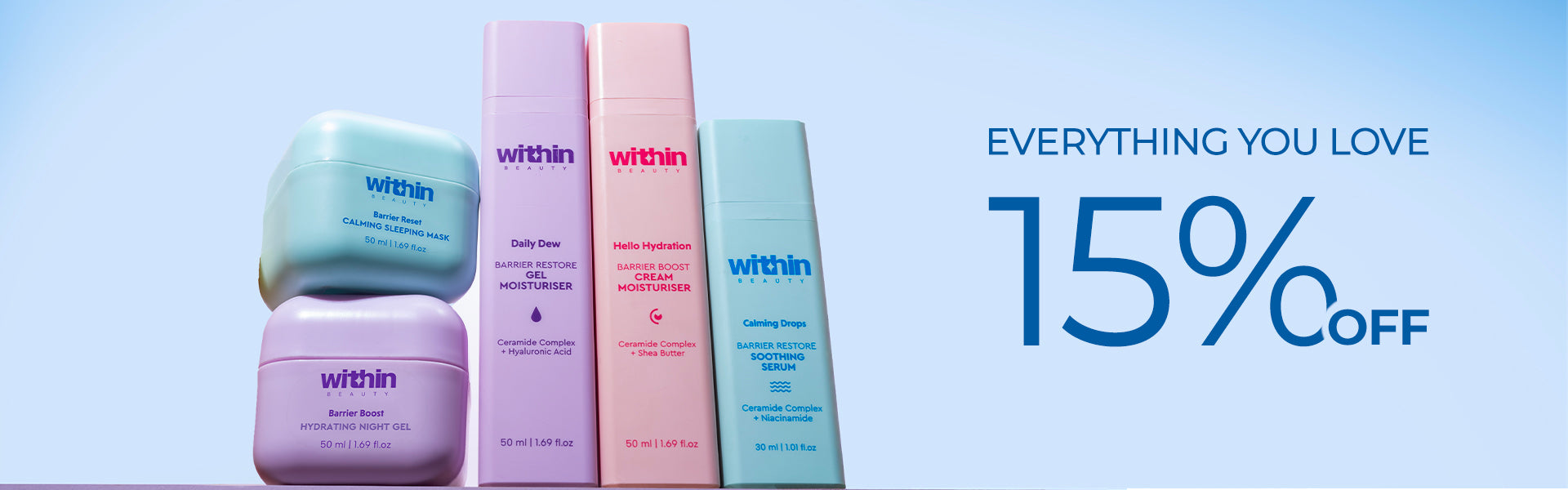 Your skin barrier is your first line of defence, taking on stress, weather, and everyday demands. At Within, we create skincare that supports it through all of it. From active-packed serums to comfort-first moisturisers. Every formula is designed to strengthen, restore, and keep your skin feeling balanced from morning till night.